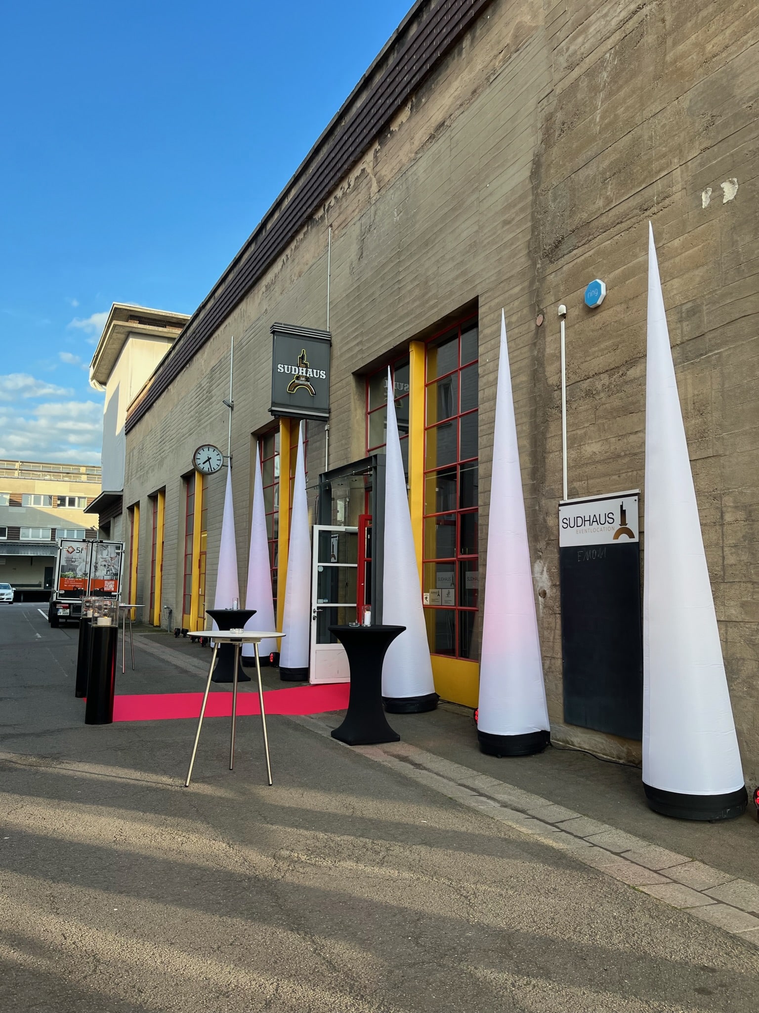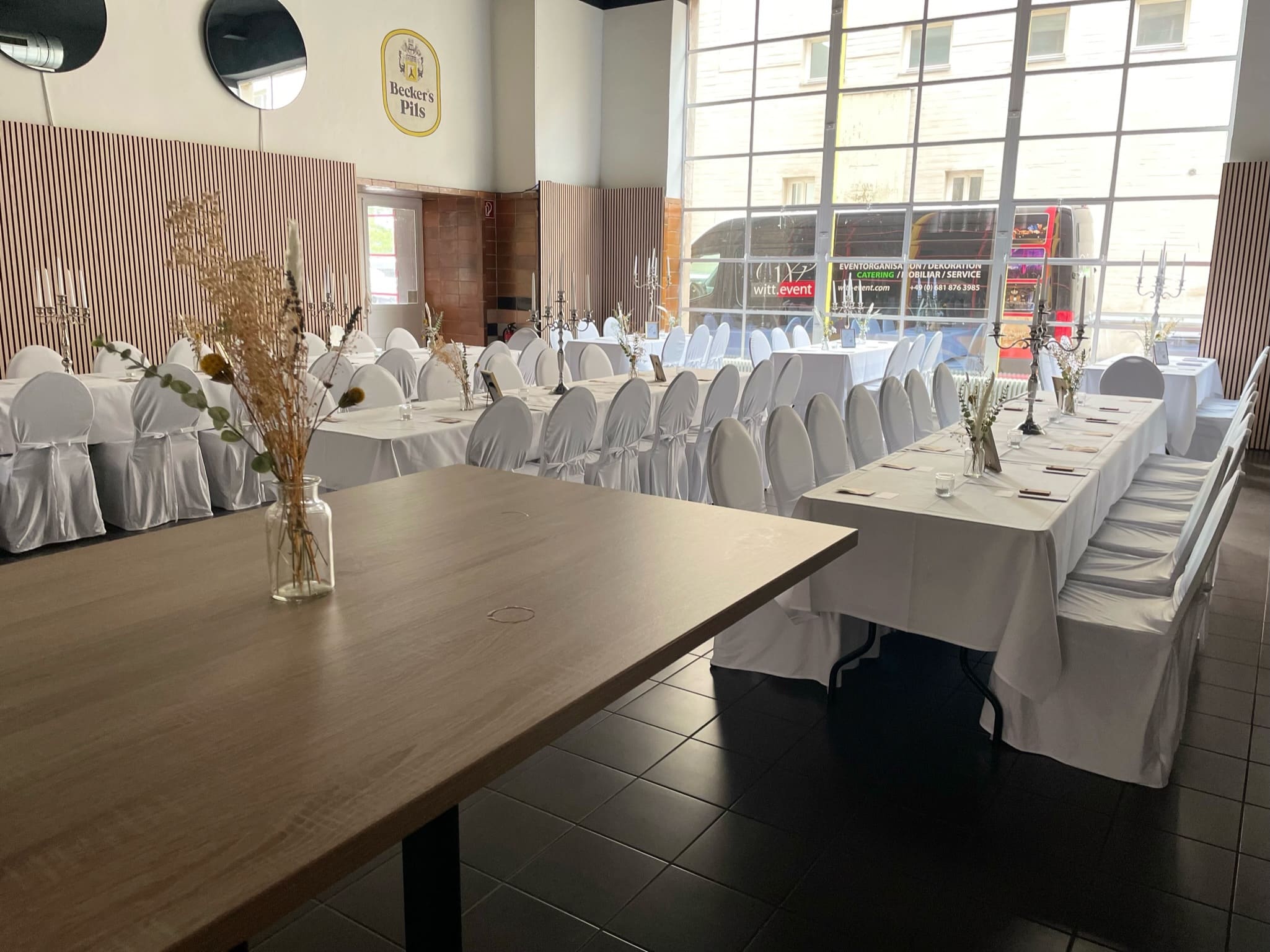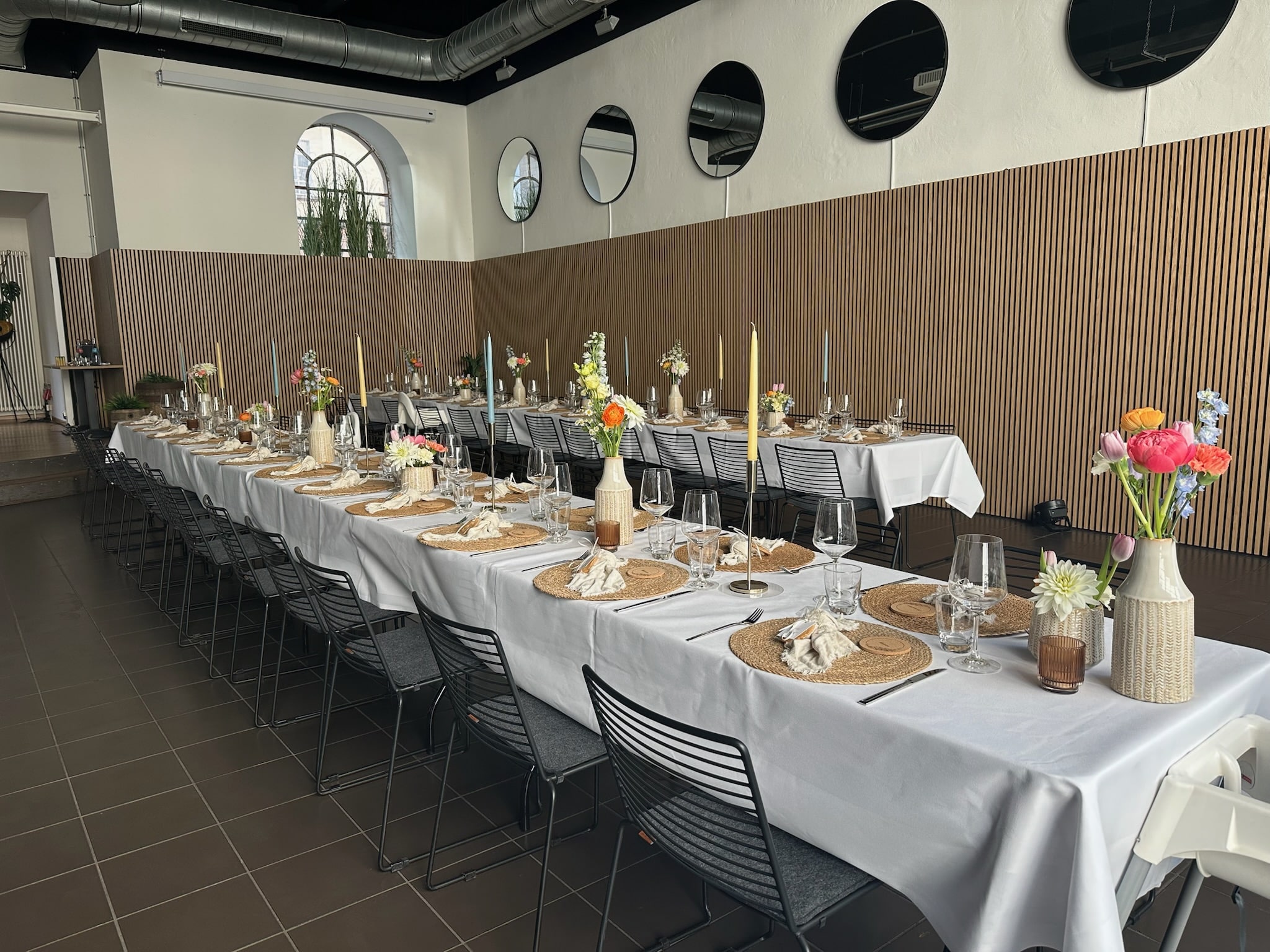 Als Herzstück des Innovationsparks am Beckerturm kombiniert das Sudhaus industrielle (Brau-)Geschichte mit modernen, liebevoll gestalteten Details. Unsere Raumaufteilung (Festsaal und separater Bar-/Buffetbereich) ermöglicht es euch, Essen und Feier voneinander zu trennen und so in beiden Bereichen eine dem Anlass entsprechende Atmosphäre zu schaffen.