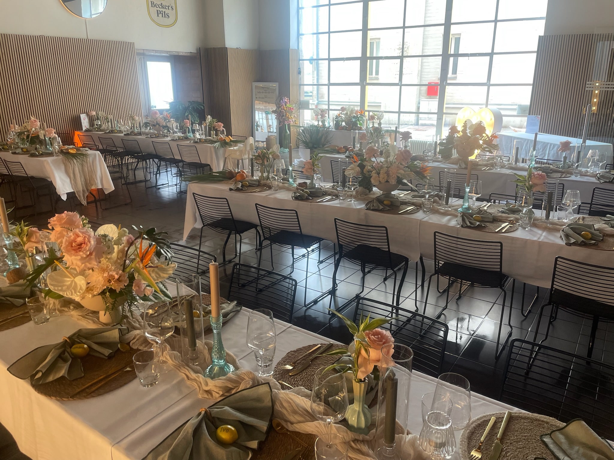 Wählt zwischen der einzigartigen Kulisse des historischen Kesselraums der ehemaligen Becker Brauerei, die die Zeremonie für euch und eure Gäste unvergesslich machen wird oder dem großzügigen Außenbereich, der euch viel Raum für individuelle Gestaltung gibt und stilvolle Fotomomente verspricht.